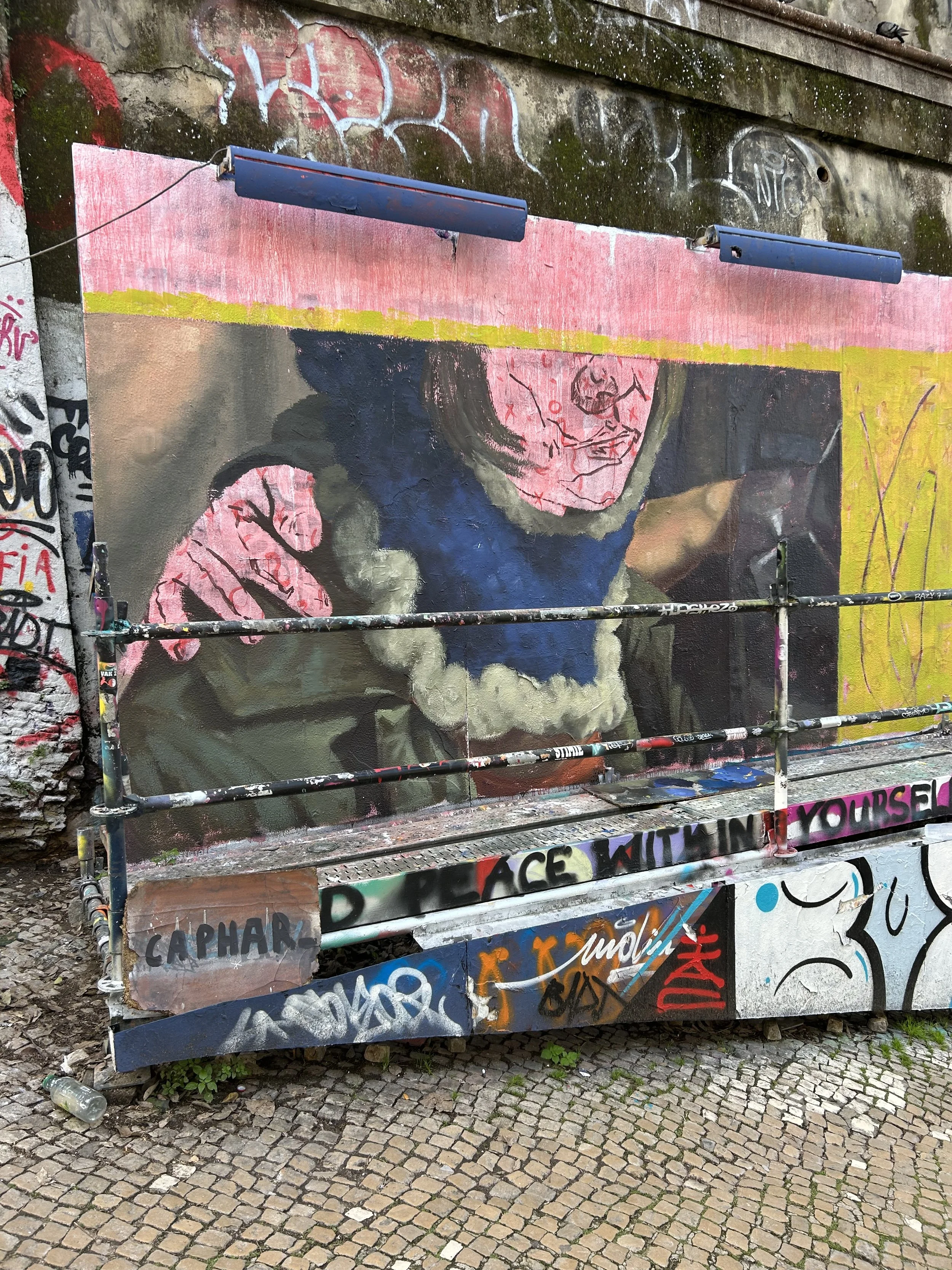 /First piece ever painted in Lisbon at the GAU installation next to the Sao Pedro mirador. It took a total of 5 days to be painted and ultimately lasted… five days before getting covered by another artist.