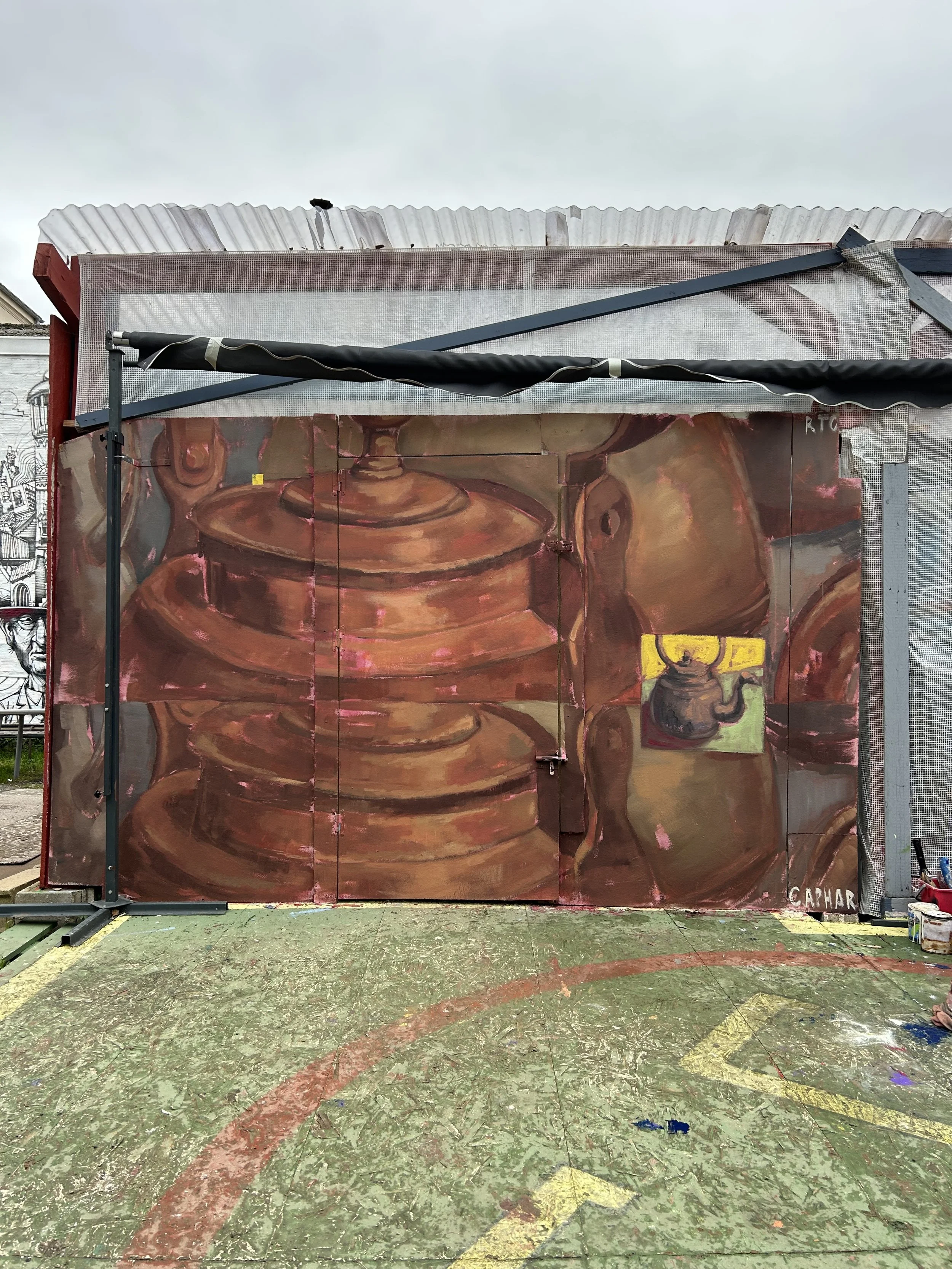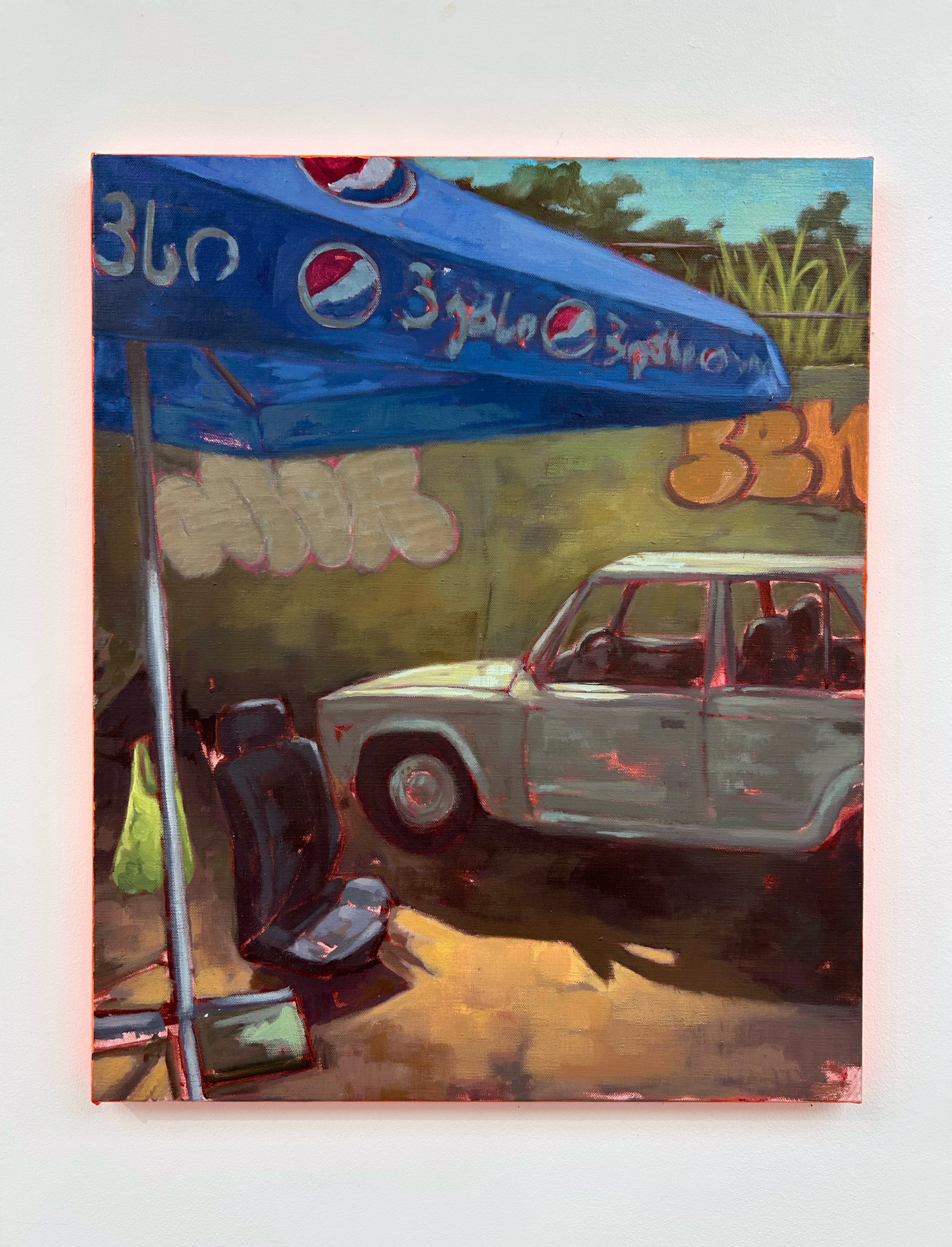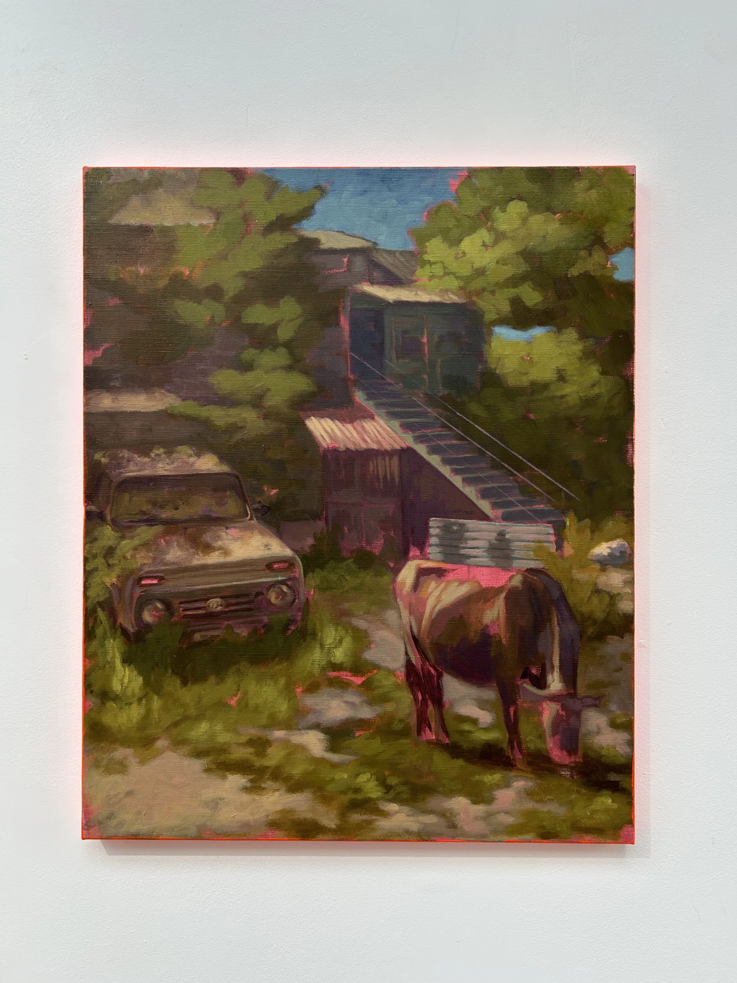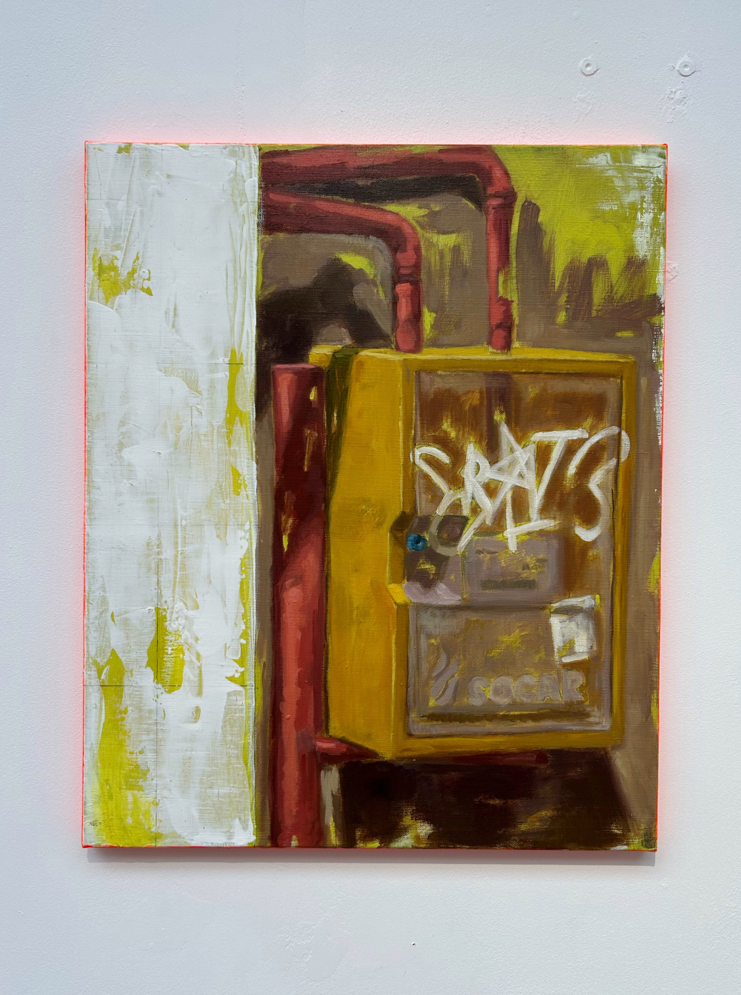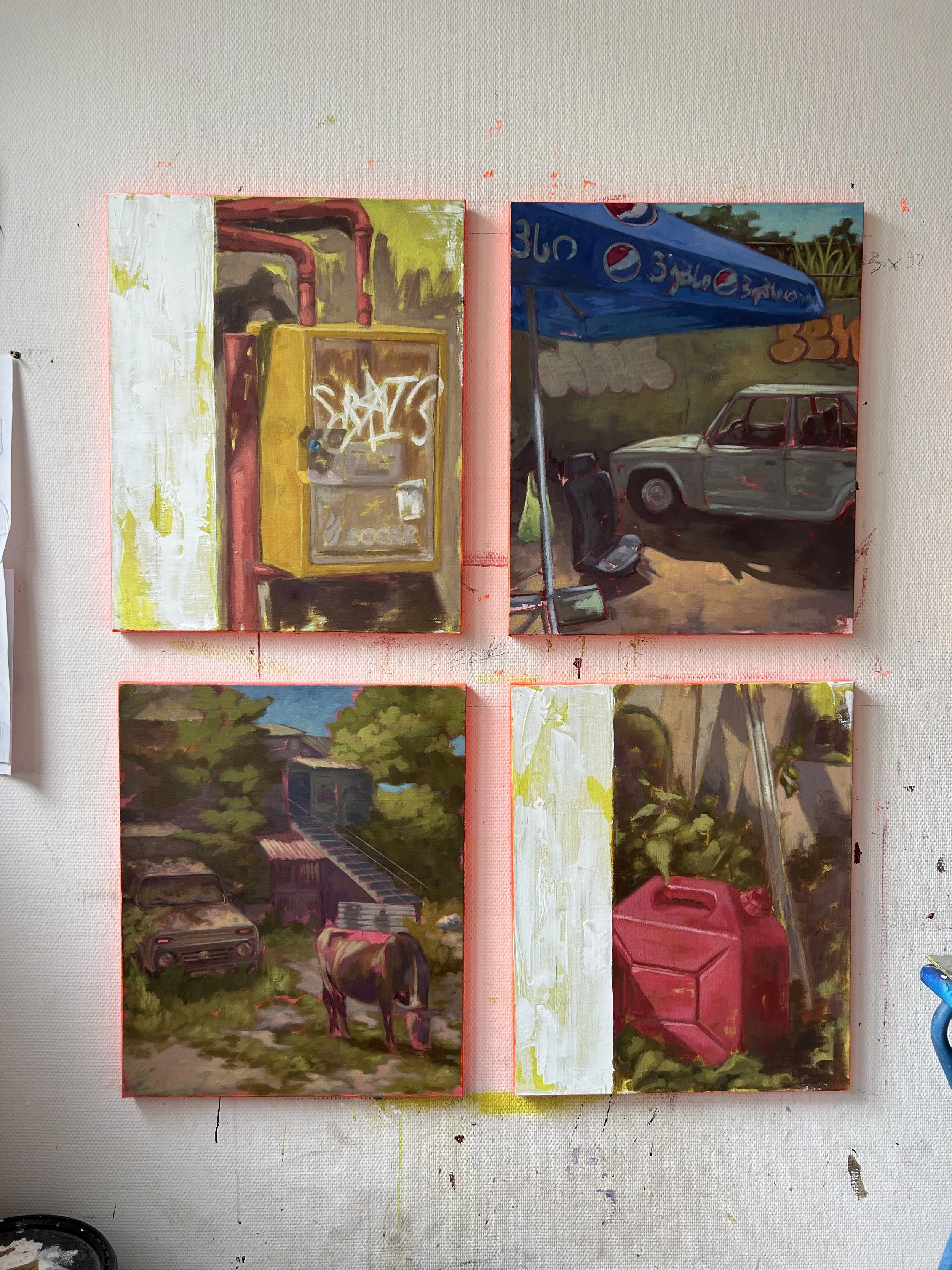 I started working on the show right after I came back from a roadtrip in Georgia, my phone was full of pictures and simply chose to paint the one that spoke to me the most. What did came across though, really was the heavy mix of past USSR industrial landscapes combined with its rural environment.